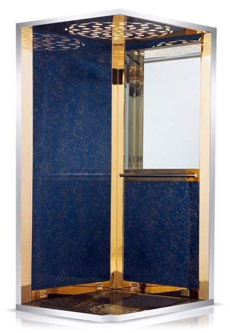 METERHORN model asansör kabinimizde aksesuar olarak gold ayna paslanmaz sac yerleştirilmiştir.