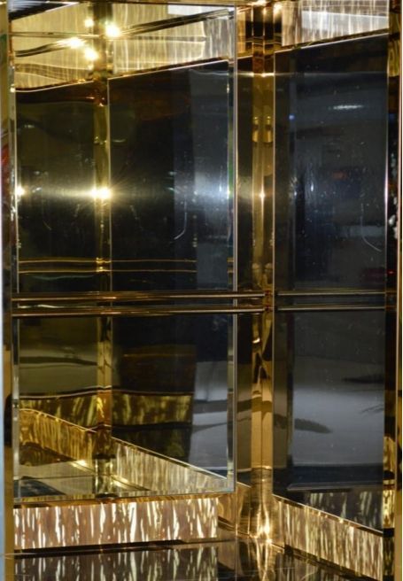 NEMESIS model asansör kabinimizde aksesuar olarak gold ayna paslanmaz kullanılmıştır.